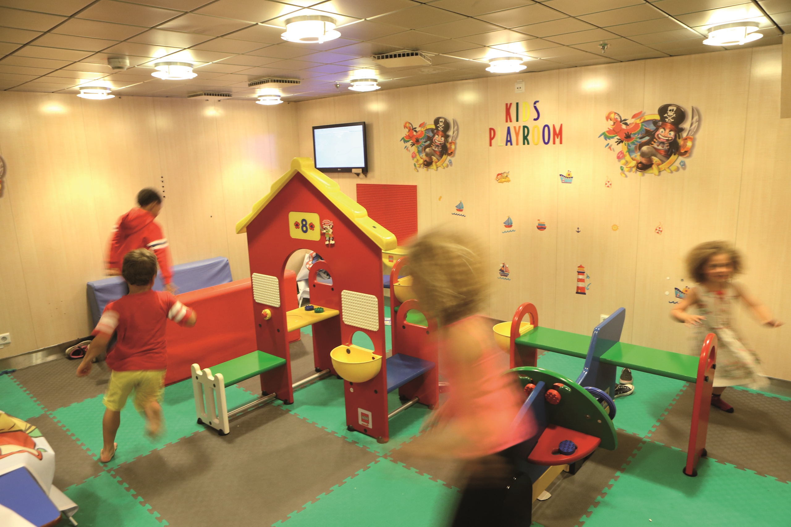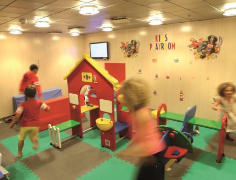 Kids enjoying themselves in the childrens playroom on board Baie de Seine
