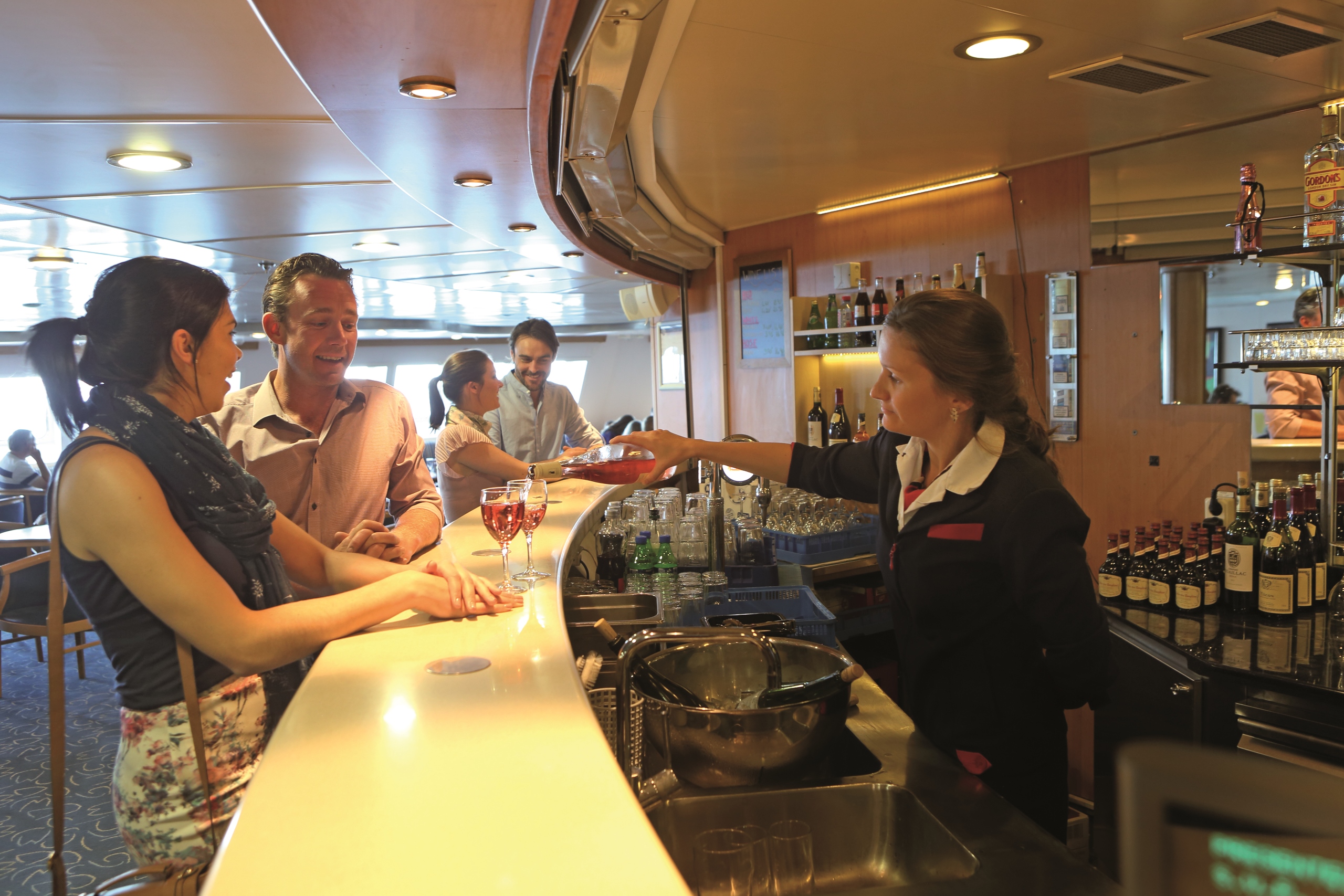 People at the bar on board Baie de Seine